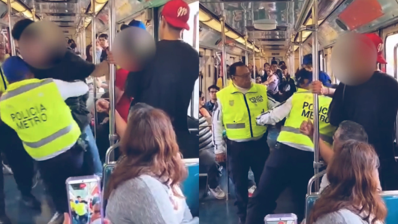Al menos cinco policías detuvieron a dos jóvenes quienes presuntamente eran estudiantes y estaban cantando dentro de un vagón del Metro de la CDMX.