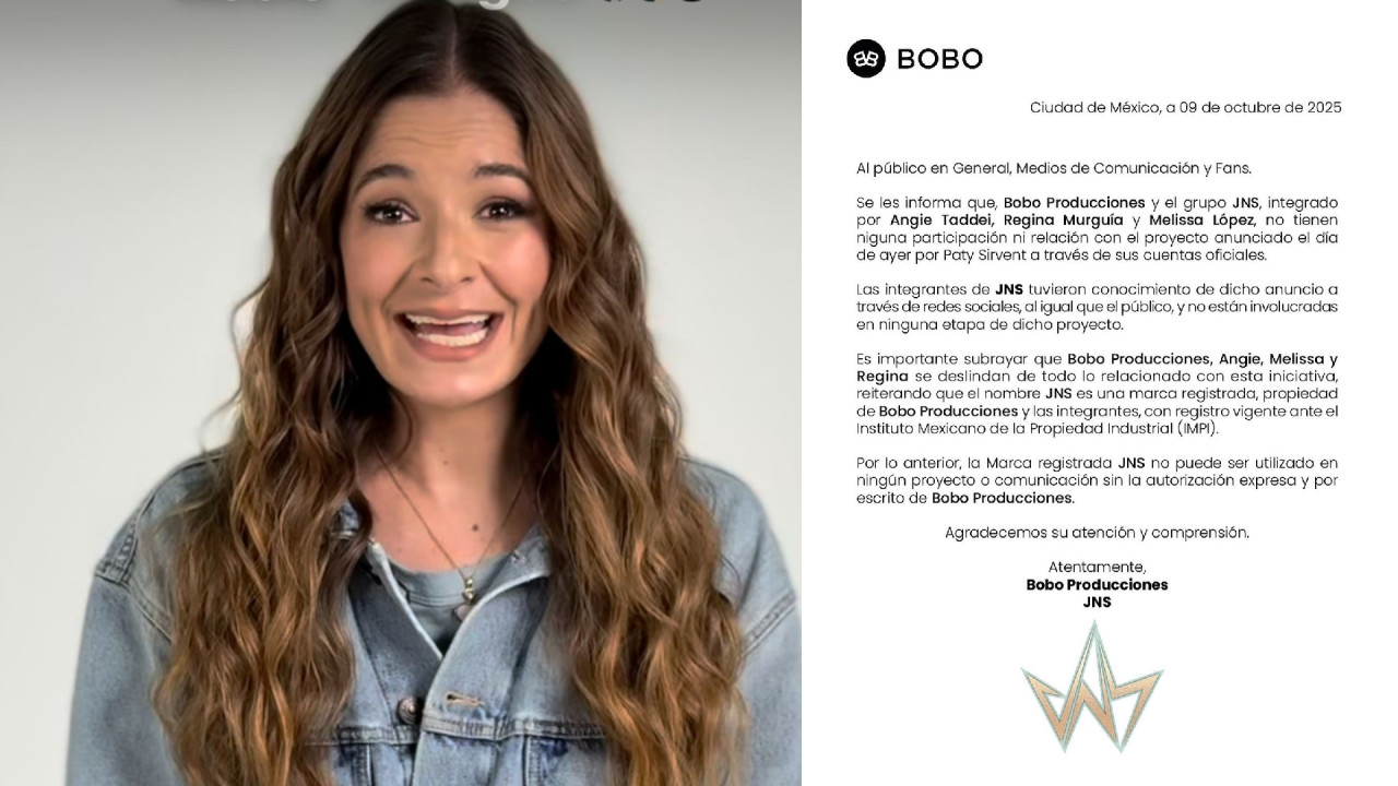 En un comunicado aseguró: “Se les informa que, Bobo Producciones y el grupo JNS [...] no tienen ninguna participación ni relación con el proyecto anunciado el día de ayer por Paty Sirvent”.