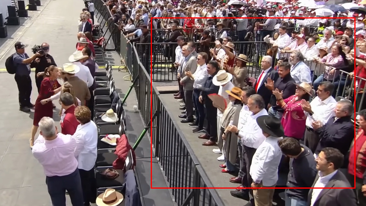En el informe por el primer año de gobierno de la presidenta Claudia Sheinbaum, realizado en el Zócalo de la CDMX, funcionarios morenistas fueron enviados a la segunda y hasta tercera fila, detrás de las vallas metálicas.