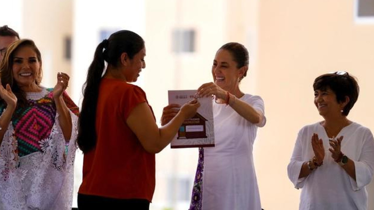 En Playa del Carmen, Quintana Roo, la Presidenta Claudia Sheinbaum Pardo encabezó la entrega de 225 viviendas nuevas del Instituto del Fondo Nacional de la Vivienda para los Trabajadores (Infonavit), como parte del programa Vivienda para el Bienestar, además de 497 liberaciones de hipoteca del Fondo de Vivienda del Instituto de Seguridad y Servicios Sociales (Fovissste) y 193 escrituras del Instituto Nacional del Suelo Sustentable (INSUS).