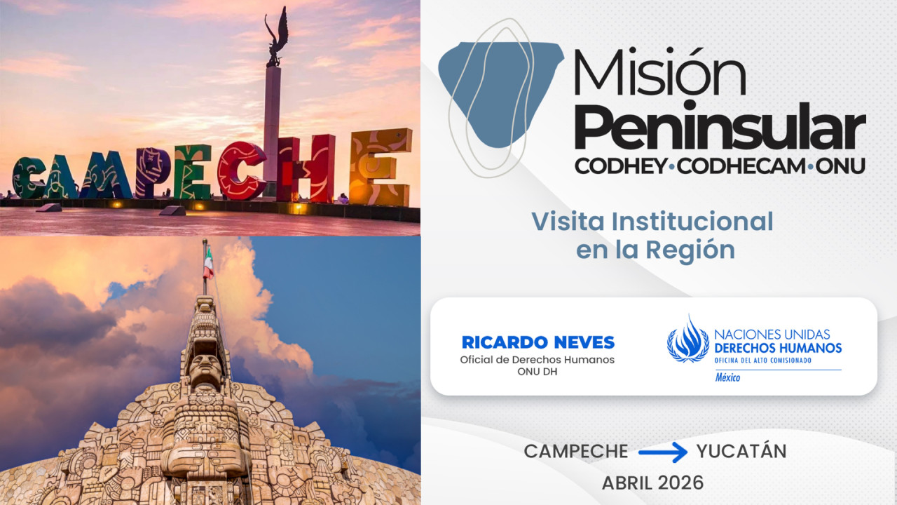 La Oficina del Alto Comisionado de las Naciones Unidas para los Derechos Humanos (ONU-DH), en coordinación con la Comisión de Derechos Humanos del Estado de Yucatán (CODHEY) y la Comisión de Derechos Humanos del Estado de Campeche (CODHECAM), realizarán del 27 al 30 de abril de 2026 la Misión Peninsular ONU-DH, un espacio de diálogo, análisis y fortalecimiento institucional en materia de derechos humanos.