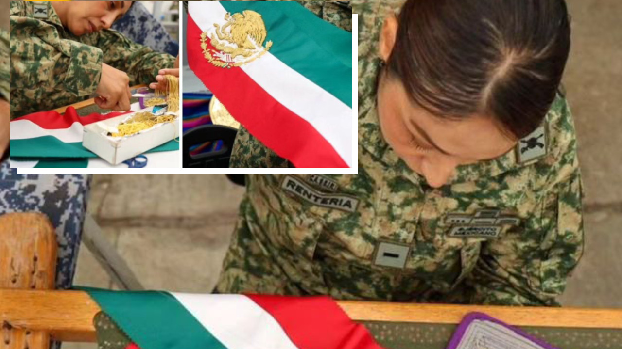 Soldado confecciona banda presidencial de Claudia Sheinbaum