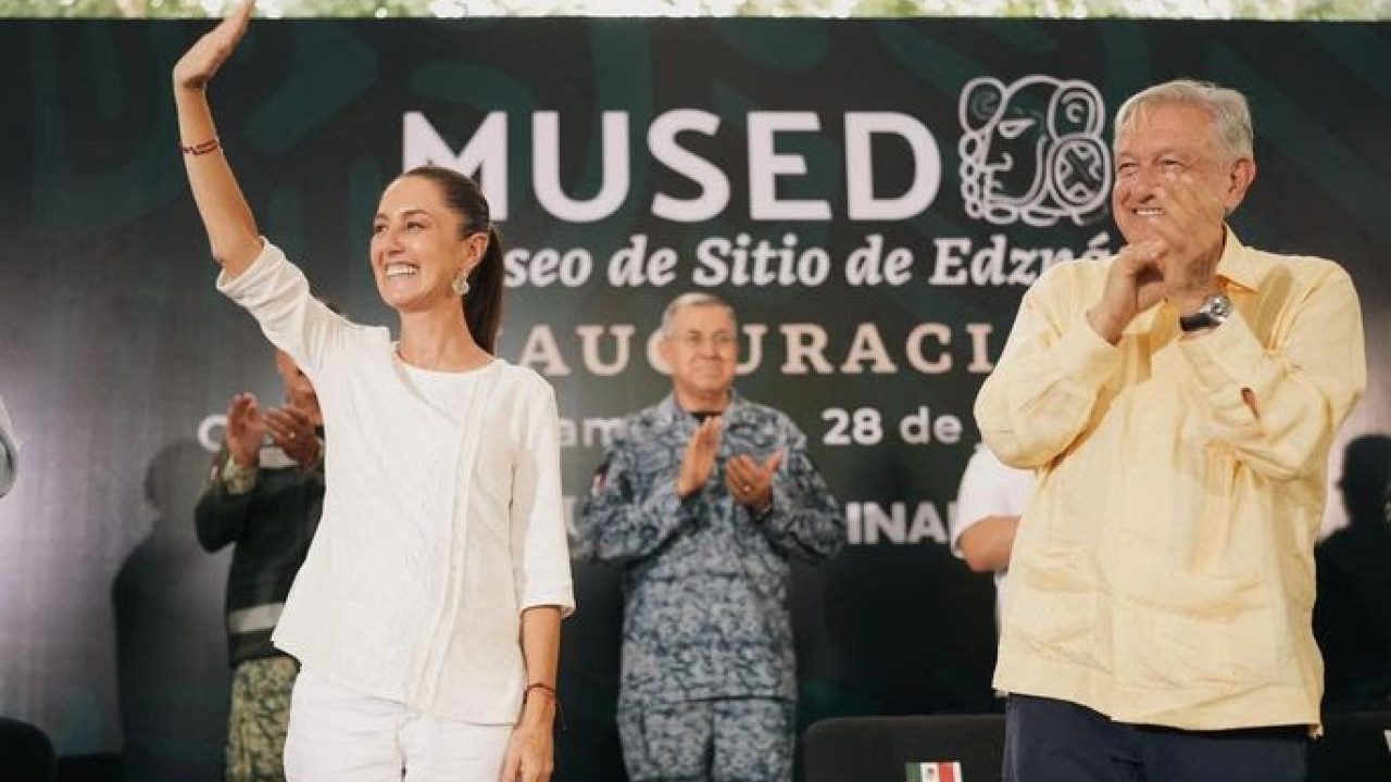 Claudia Sheinbaum y Amlo inauguran el museo de Edzná