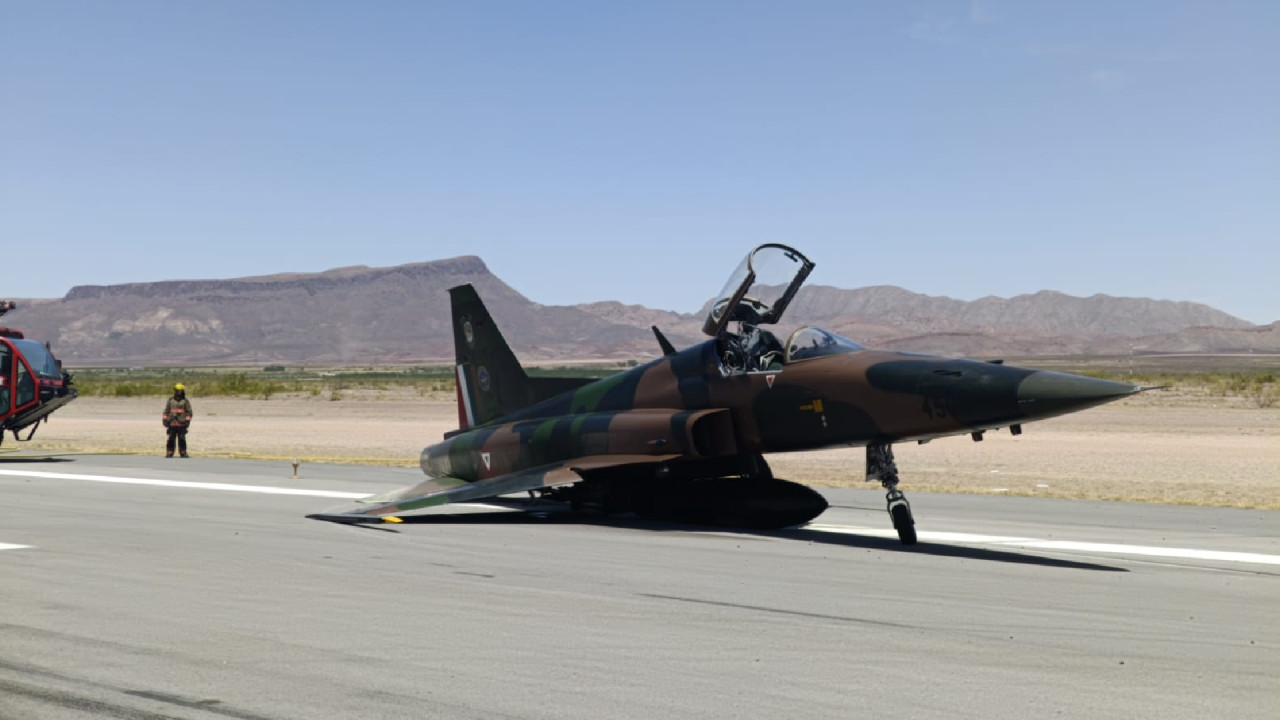 El Aeropuerto Internacional de Chihuahua suspendió temporalmente sus operaciones después de que un avión de combate de la Fuerza Área tuvo un aparente fallo en el tren de aterrizaje.