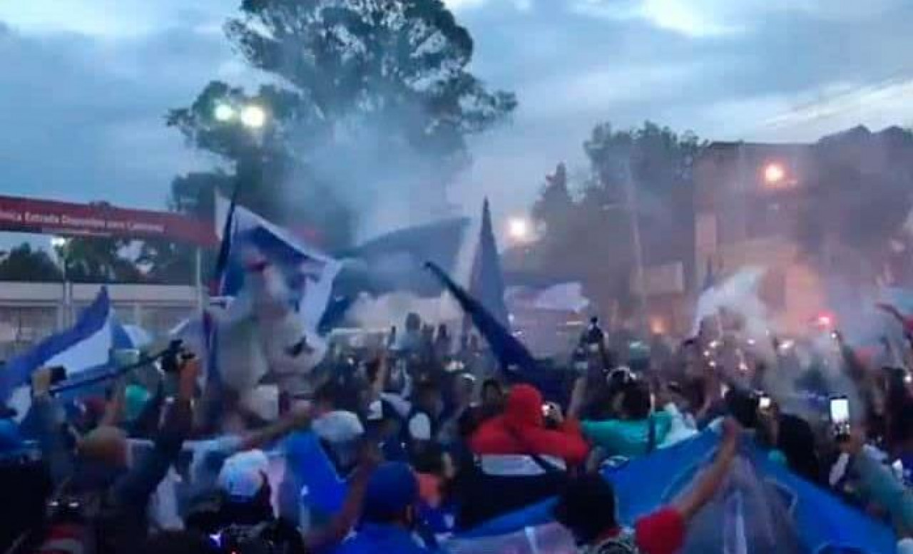 Previo al encuentro del Cruz Azul contra el América, que se disputó el domingo por la noche y terminó con un desangelado empate cero a cero, más de 100 aficionados de La Máquina se reunieron para celebrar y cantar a los largo de 45 minutos antes de que salieran los jugadores del hotel.