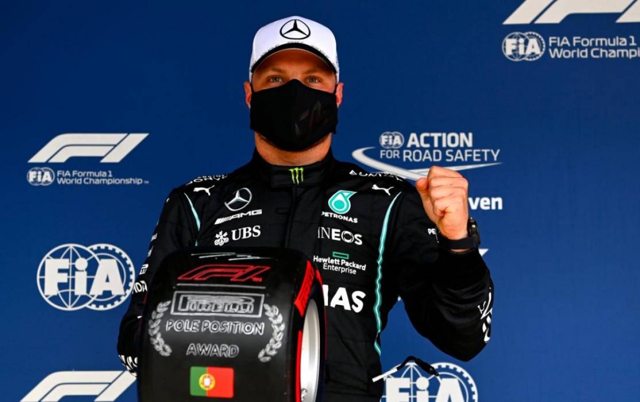 El finlandés Valtteri Bottas, de Mercedes, saldrá primero este domingo en el Gran Premio de Portugal, el tercero del Mundial de Fórmula Uno, que se disputa en el circuito de Portimao, donde evitó que su compañero, el séptuple campeón mundial inglés Lewis Hamilton, firmase su “pole” número cien en la categoría reina.