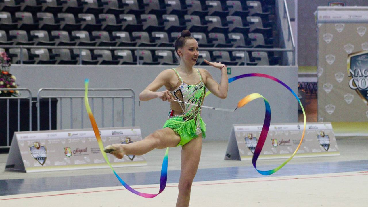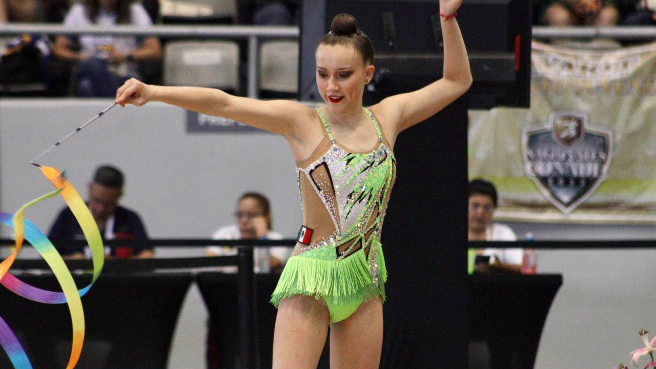 Las preseas doradas las obtuvo en los aparatos de pelota con puntuación 29.150, en clavas con puntaje de 27.600, y en cinta con 27.500 puntos; así como un metal dorado más en All Around.