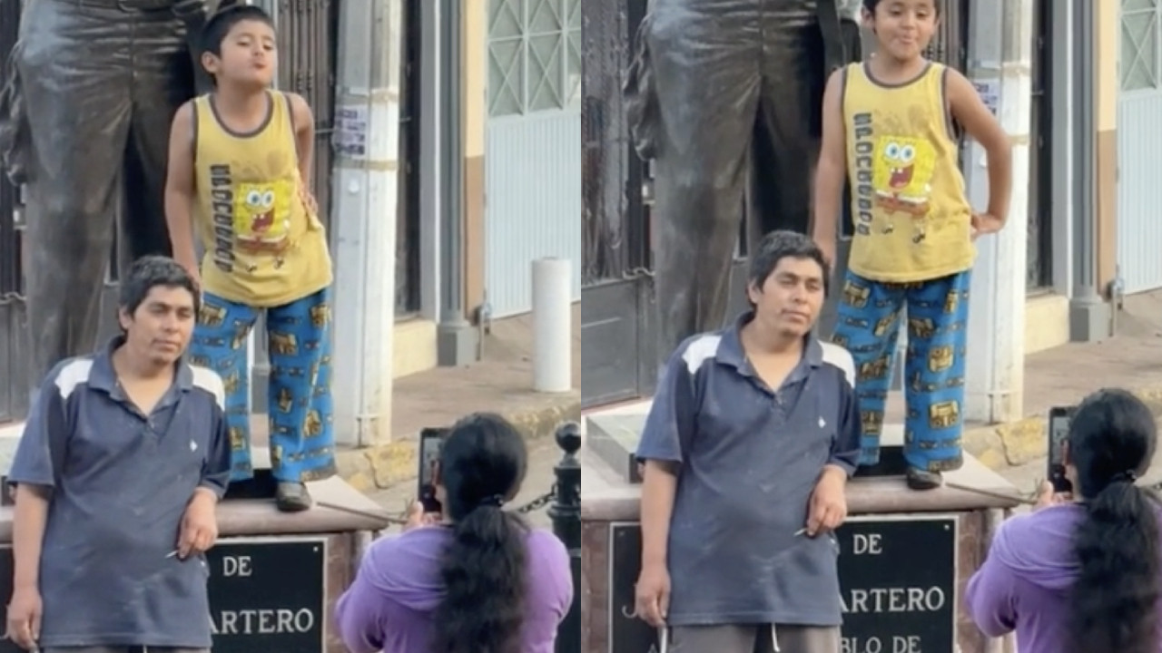 La curiosa escena fue vista junto a la icónica estatua de Jaimito, el cartero que repartía la correspondencia en famosa vecindad.