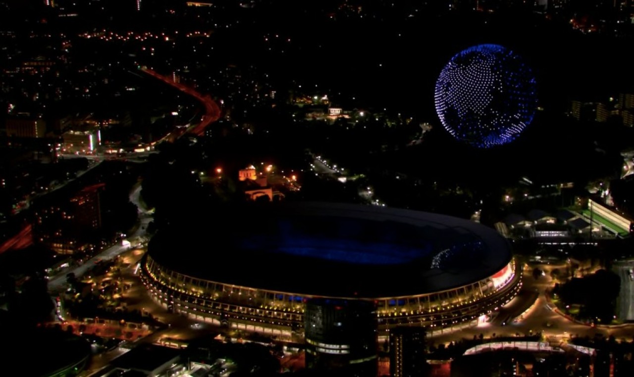 Casi dos mil drones surcaron el cielo del Estadio Olímpico de Tokio para formar una imagen en tercera dimensión del planeta Tierra.