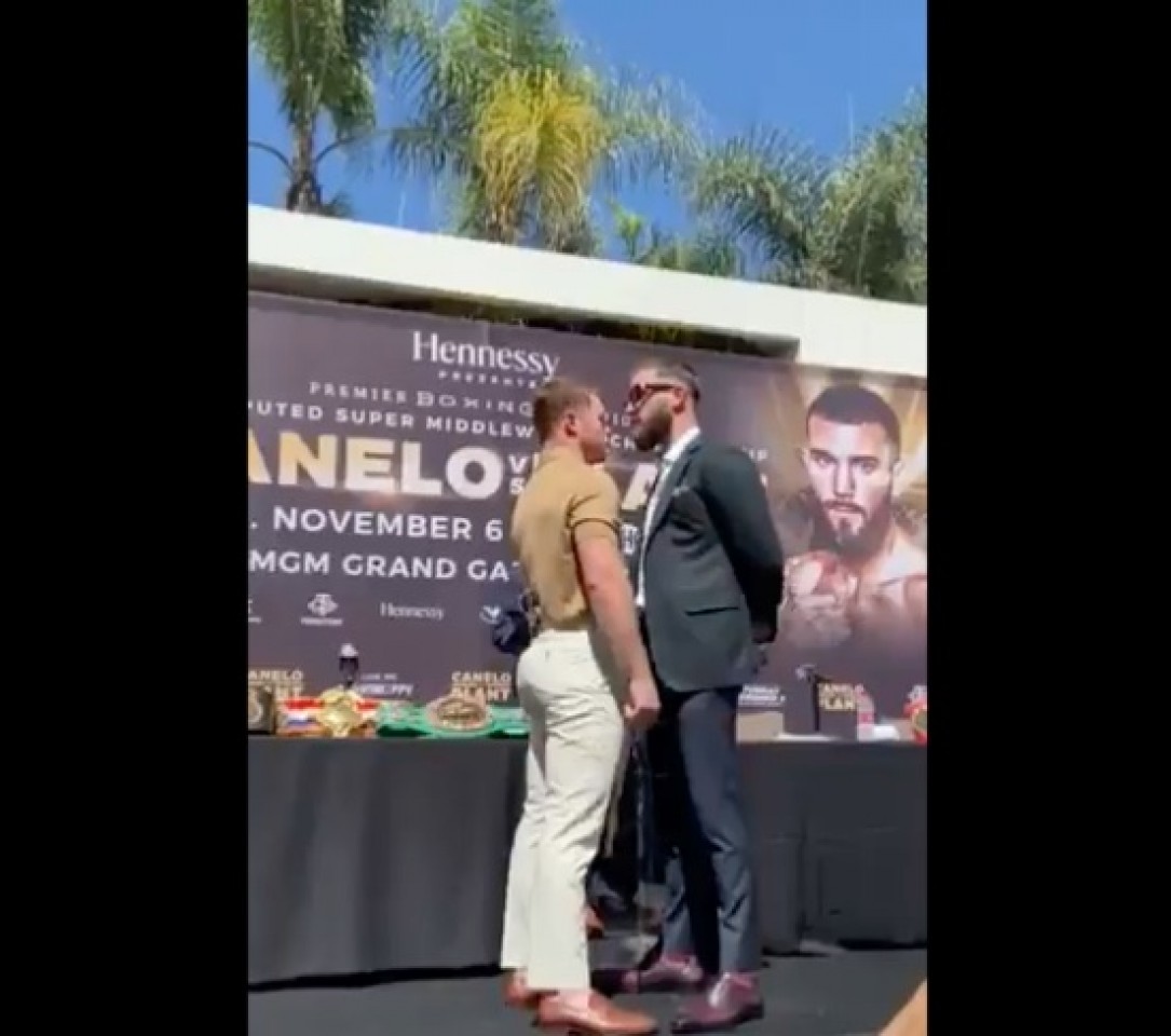 La conferencia de prensa de Saúl “Canelo” Álvarez y Caleb Plant por su próximo encuentro programado para el 6 de noviembre en Las Vegas pasó de las palabras a los golpes e incluso el estadounidense terminó con un corte en el pómulo derecho.