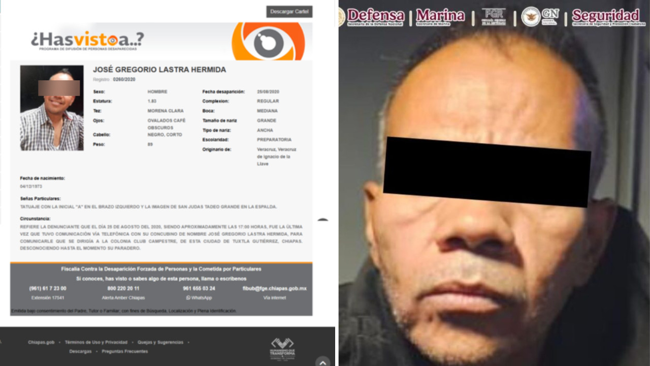 José Gregorio Lastra Hermida, presunto reclutador del CJNG que fue detenido en Cuajimalpa, alcaldía de CDMX, tiene activa una ficha de desaparición de Chiapas desde 2020.