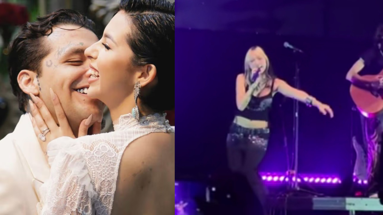 La artista recordó cuando en una gira pasada cantó en español la canción "Adiós Amor" de Nodal, pero en esta ocasión dijo "descubrí que había chisme ahí sobre Christian (...) así que no puedo cantar 'Adiós Amor' cuando estoy en México", por lo que prefirió cantar una de Selena.