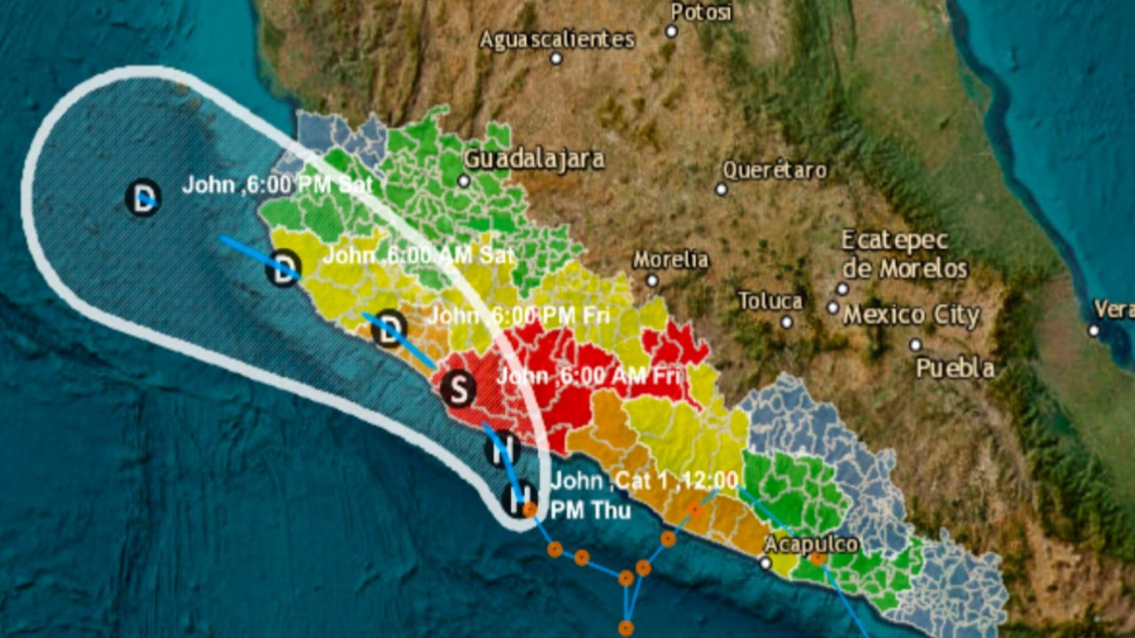 El Sistema de Alerta Temprana por Ciclones Tropicales emitió alerta de Peligro Máximo para la población de Michoacán debido a la próximidad del huracán John como categoría 1.