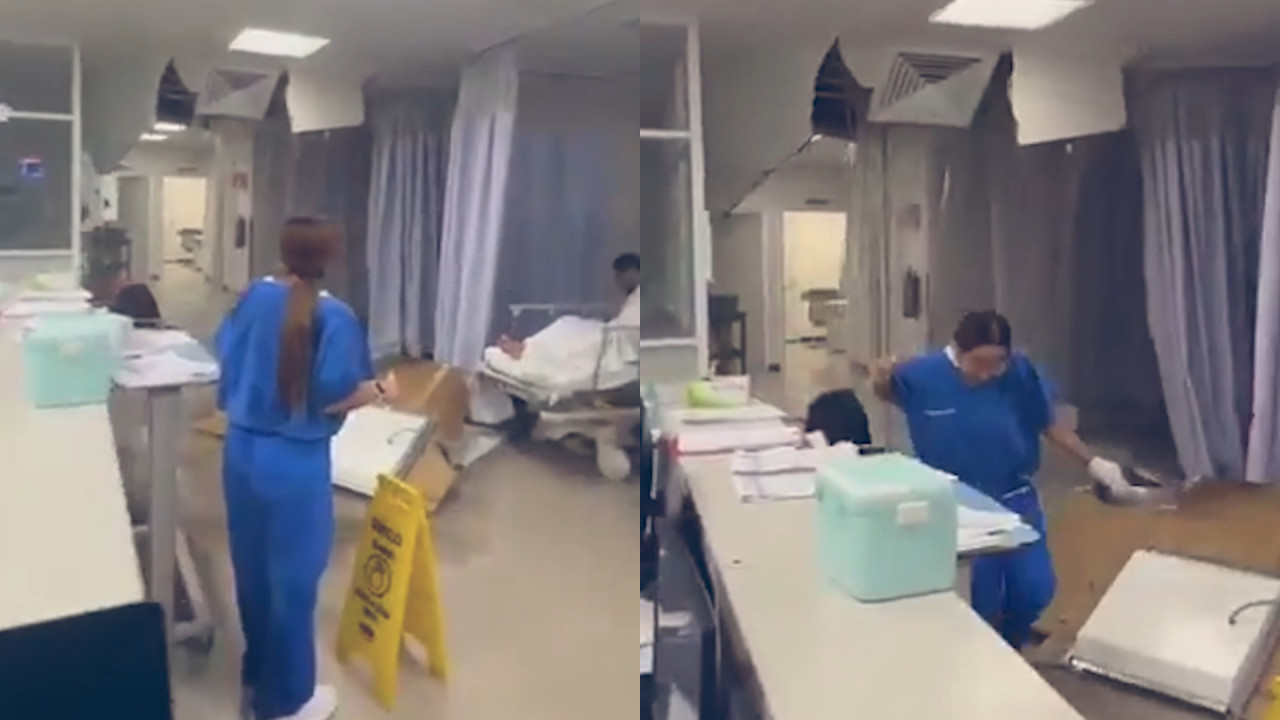 El incidente quedó registrado en video, en el que se observa que personas se encontraban cerca del lugar, incluso, parte de la estructura cae muy cerca de la camilla de un paciente.
