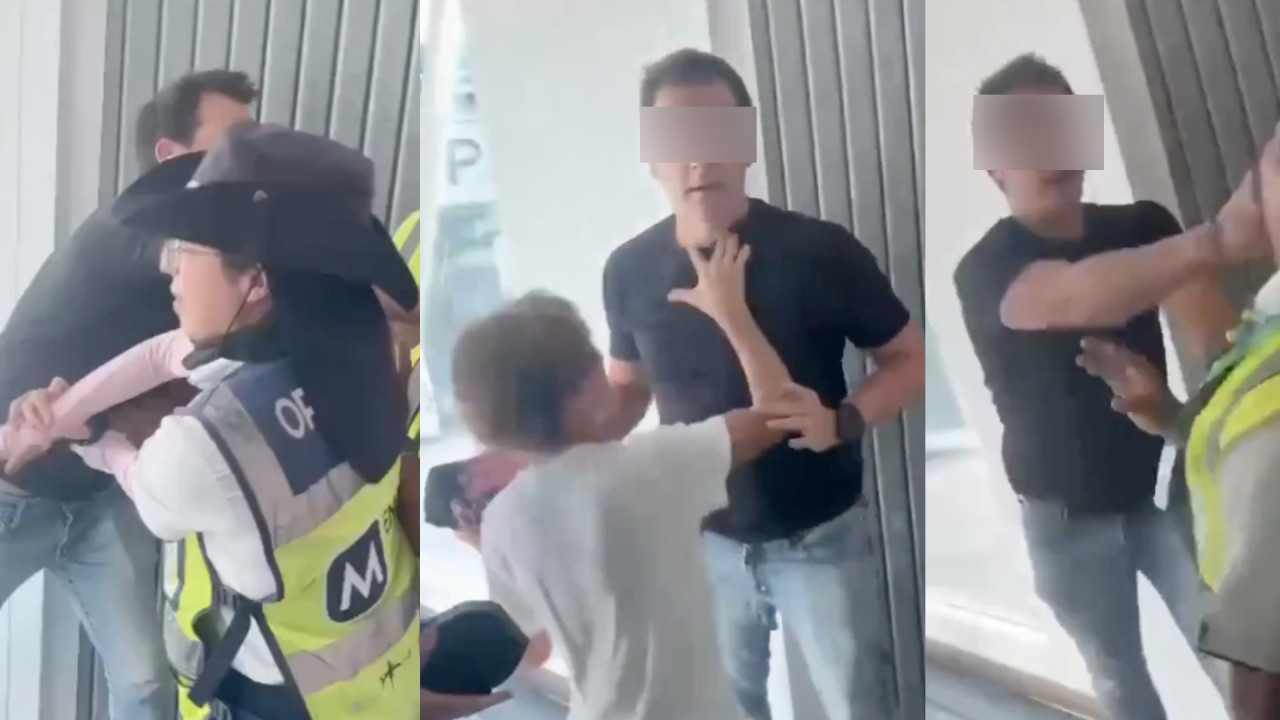 En un video compartido en redes sociales, se viralizó el momento en que un hombre empuja y ofende al personal del lugar, mientras sus hijos le piden que se detenga.