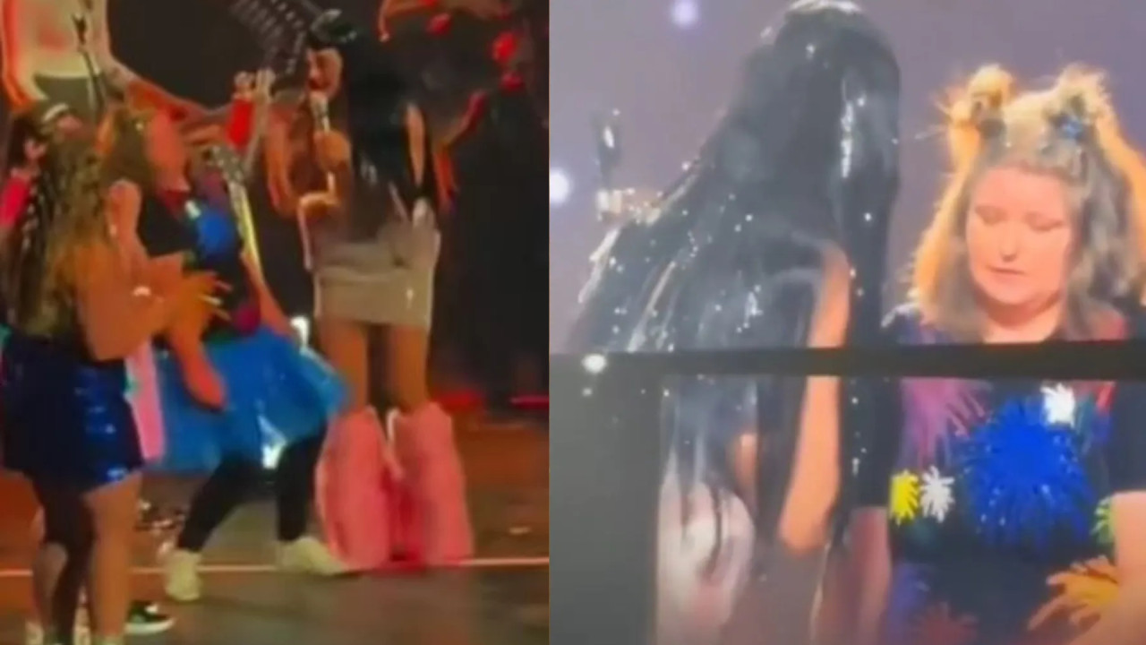 El video del momento circuló en redes sociales, en el que se ve que la menor se desploma frente a la cantante.
