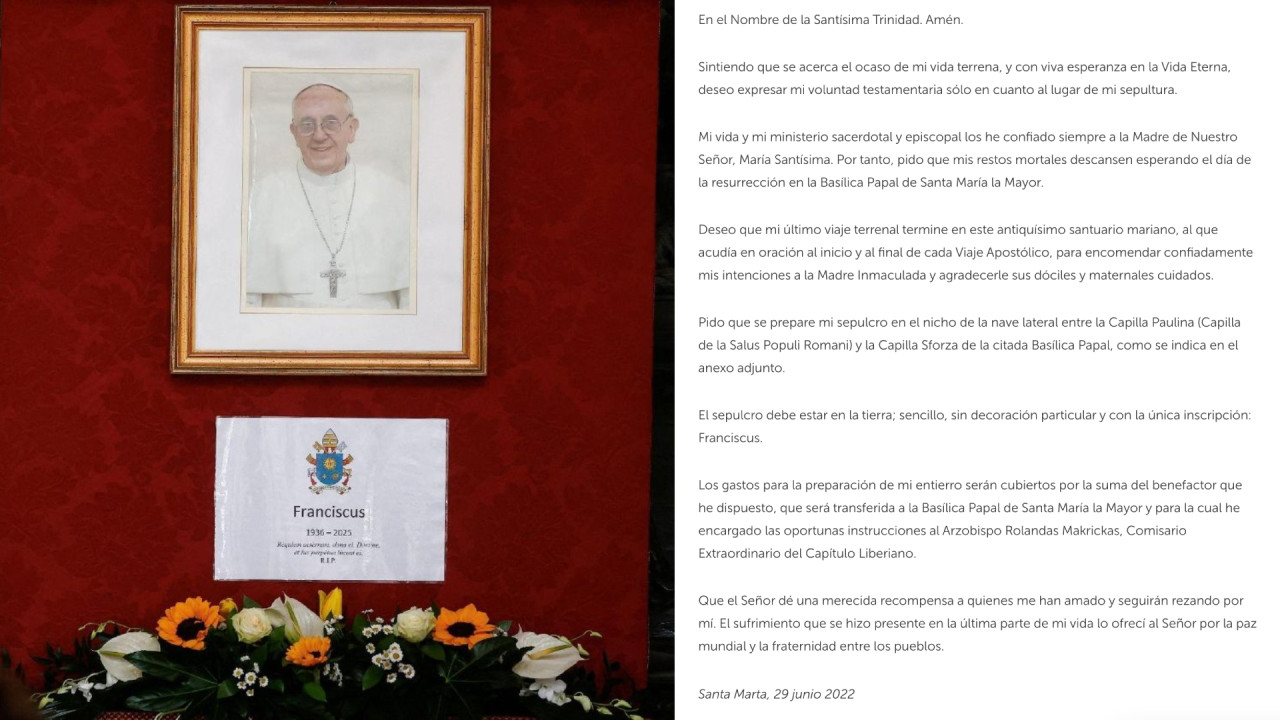 El Vaticano hizo público el testamento que Jorge Mario Bergoglio redactó en junio de 2022, dejando claro la austeridad con la que deseaba su último adiós.