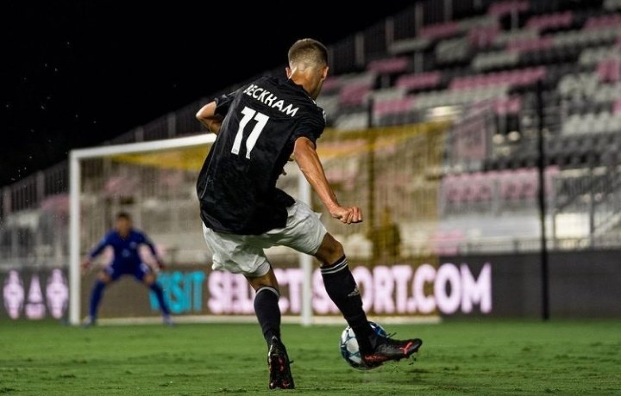 Romeo Beckham, hijo del famoso futbolista David Beckham, debutó este domingo en el fútbol estadounidense con el club de tercera división Fort Lauderdale, en la posición de mediocampo.