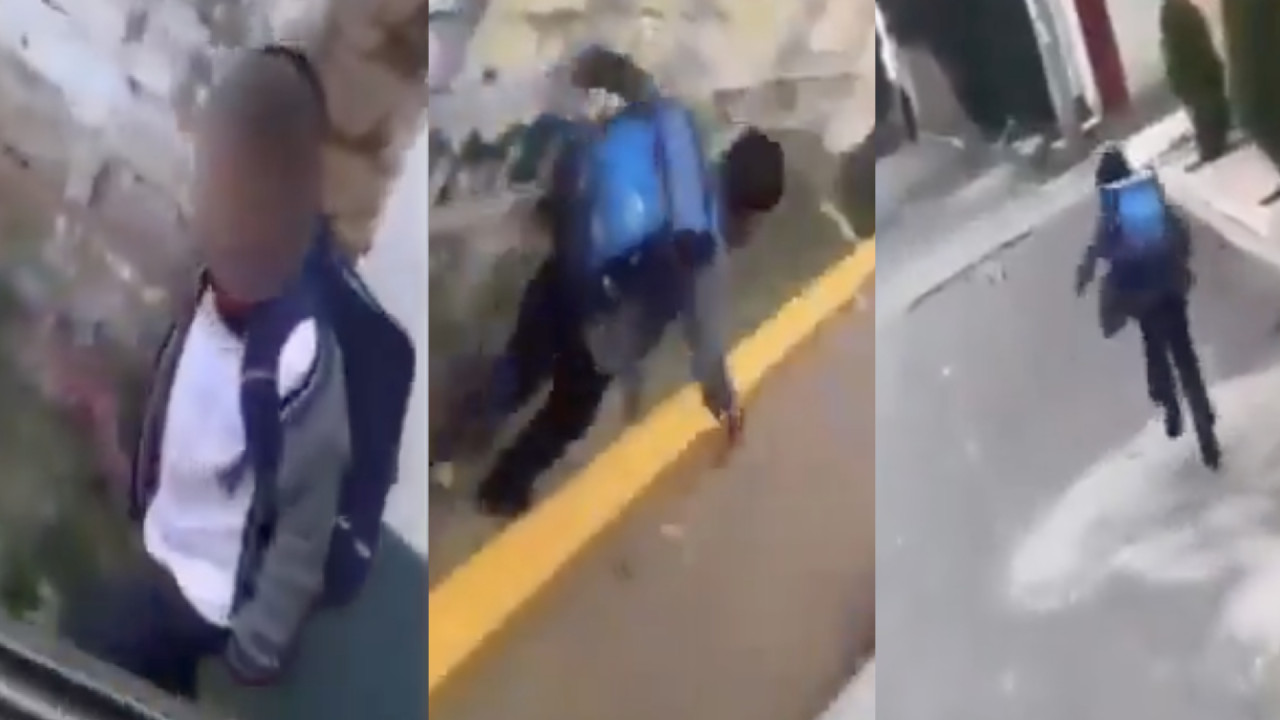 Incluso, los hombres persiguen al niño, a quien luego se le ve dentro de la unidad llorando mientras ellos se ríen.