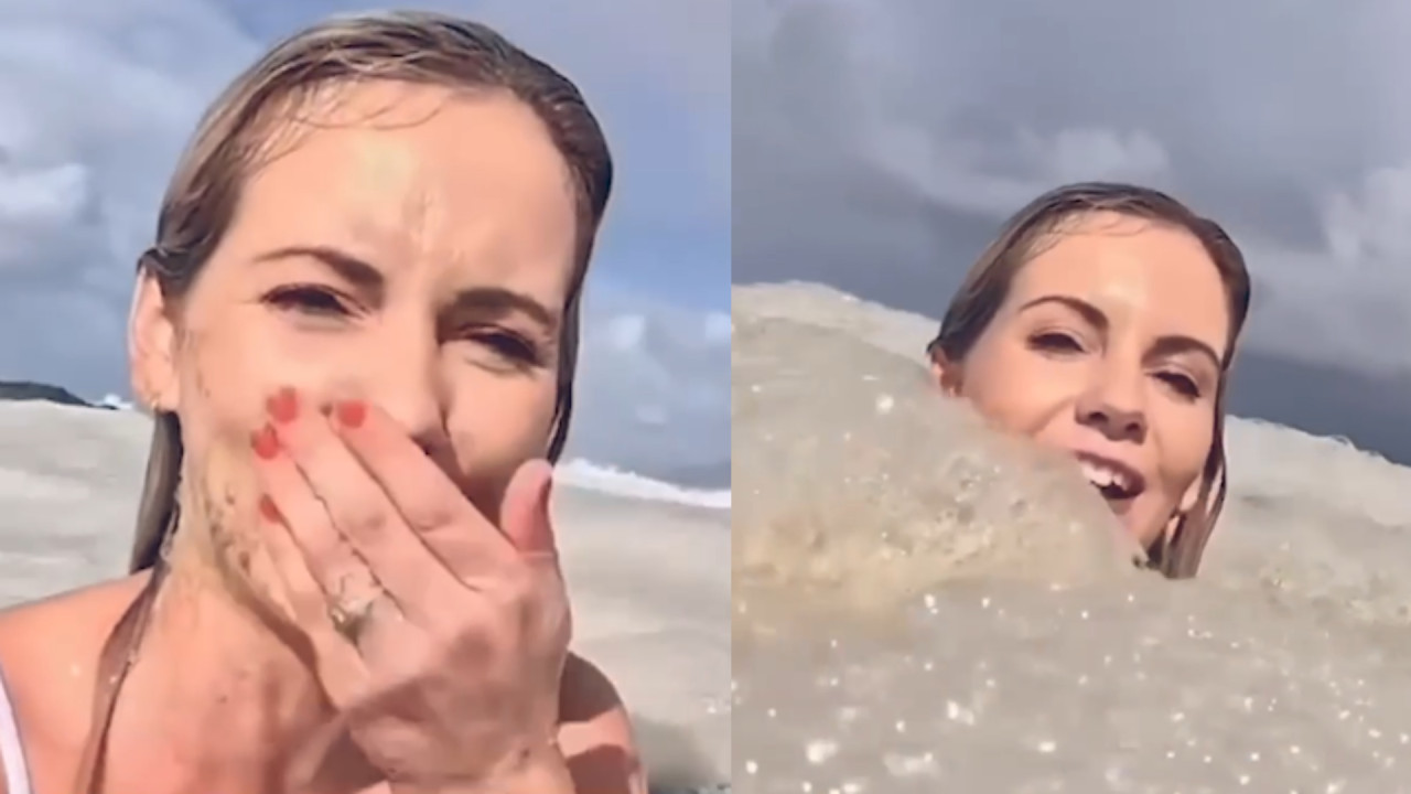 La influencer compartió una serie de videos en redes sociales en donde se le ve disfrutando en el agua, incluso en un momento, esta se mete a su boca.