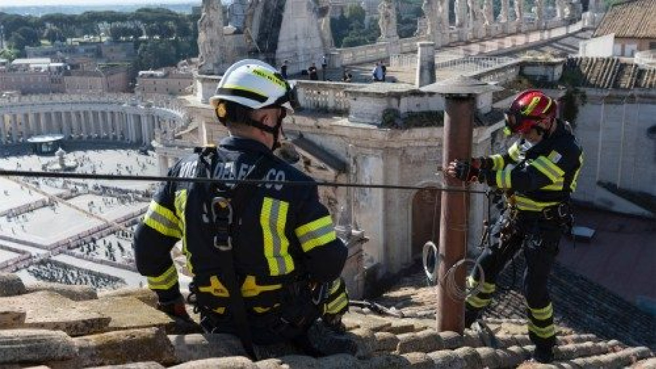 La cuenta oficial del Vaticano informó que un grupo de bomberos instaló la chimenea en la Capilla Sixtina que anunciará el término de la elección del nuevo Papa.