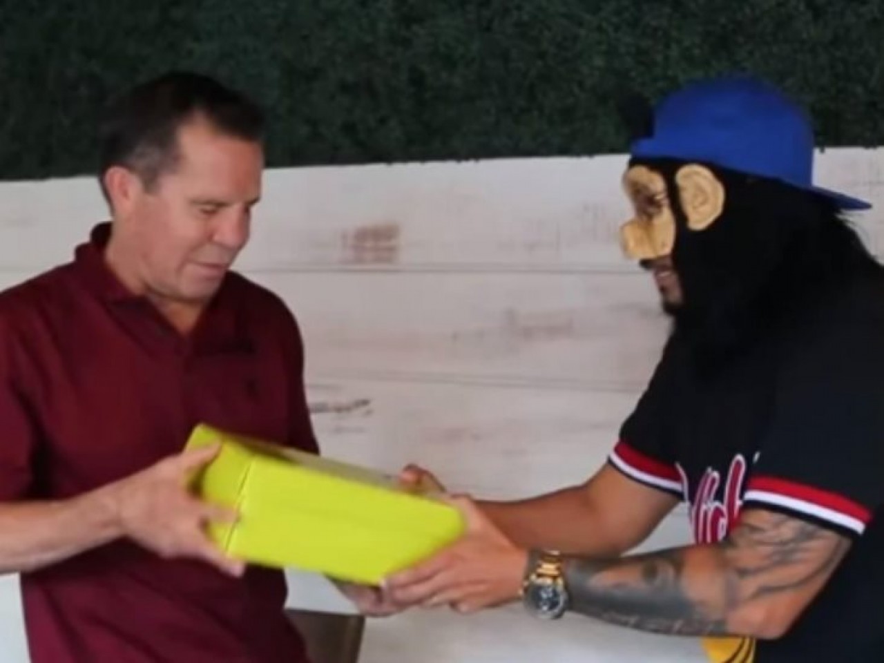 En su canal, Chango Ote publicó un video en el que, después de que el campeón intentara ponerlo en su lugar, le entrega una caja amarilla como una forma de disculparse por los problemas causados.
