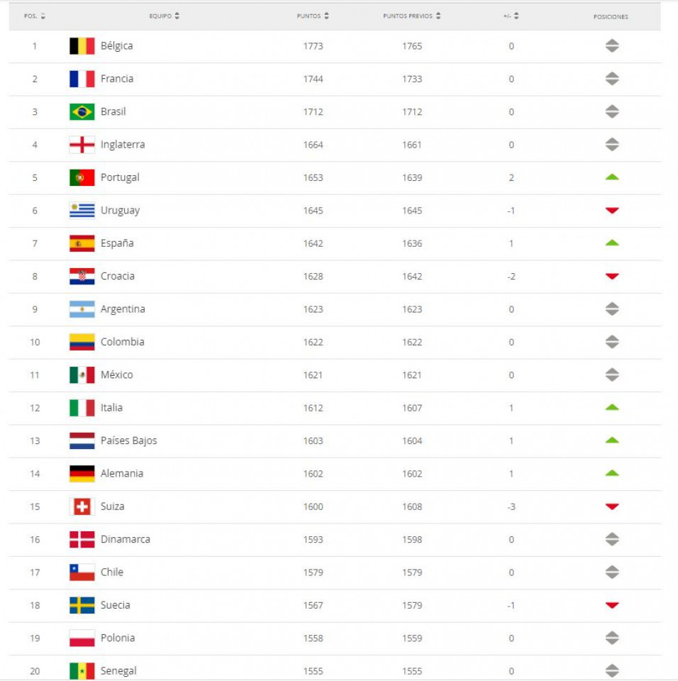 En el primer lugar se encuentra Bélgica, con mil 773 unidades, seguida de Francia, con mil 744; Brasil, con mil 712; Inglaterra, con mil 664, y Portugal, con mil 653.