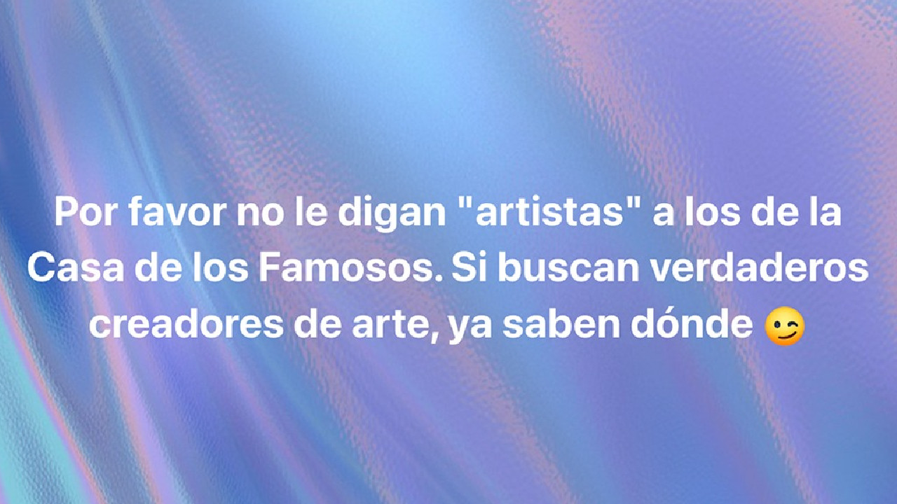 “Por favor, no le digan ‘artistas’ a los de la Casa de los Famosos. Si buscan verdaderos creadores de arte, ya saben dónde”, publicó.