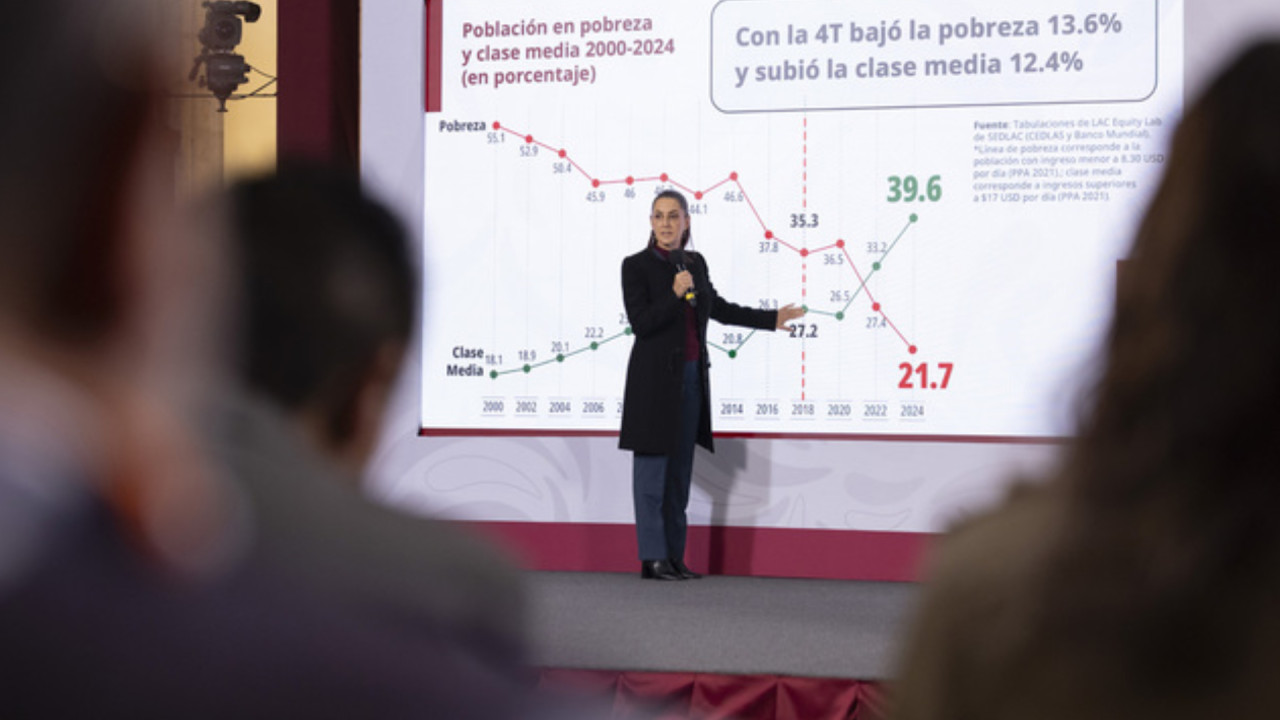 “Esto también cambia la imagen que se tiene de que solo la política de la Cuarta Transformación está enfocada a un sector de la población, el sector más vulnerable, el sector más pobre, y aquí estamos viendo que la consecuencia es que favorece al conjunto de la sociedad y a todos los sectores, teniendo como resultado el aumento de la clase media de manera histórica”, añadió.