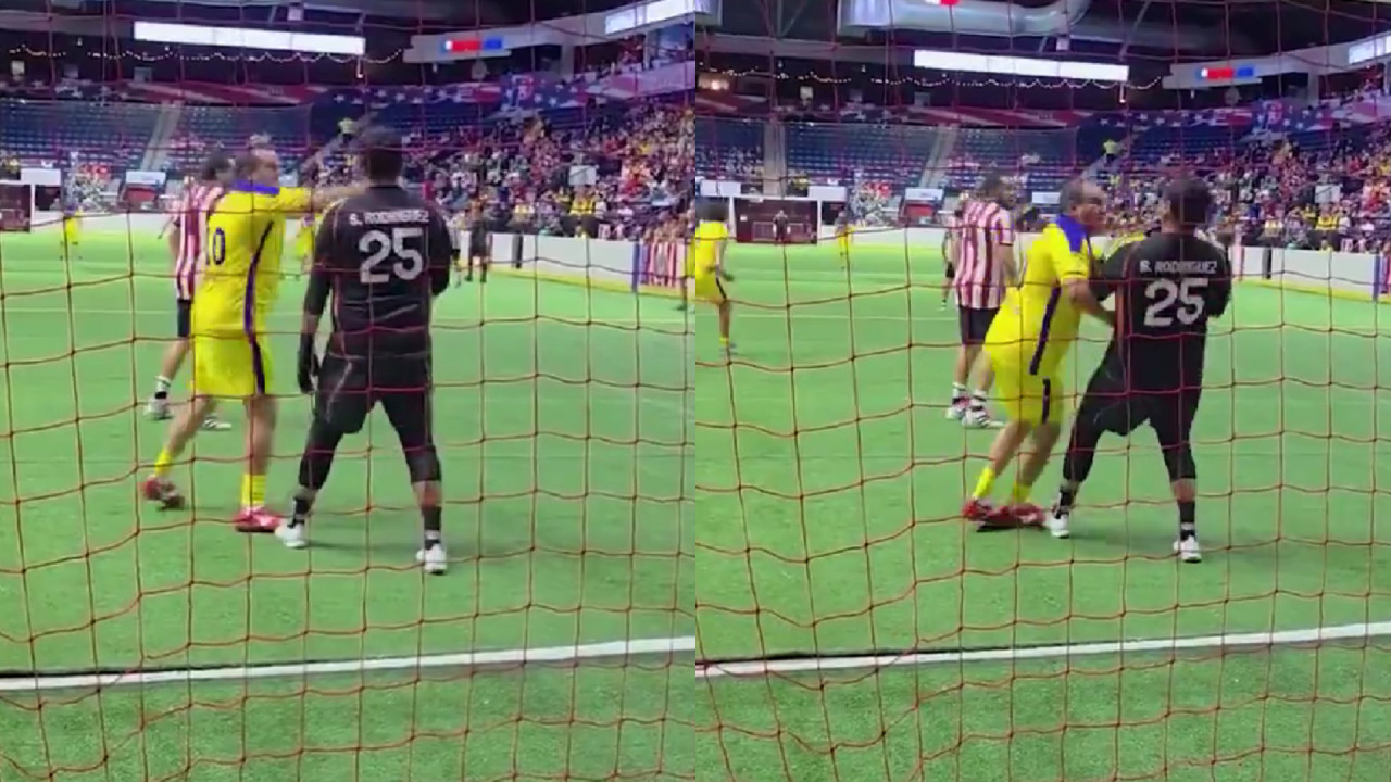 Cuauhtémoc Blanco golpea a Sergio Rodríguez durante partido Leyendas