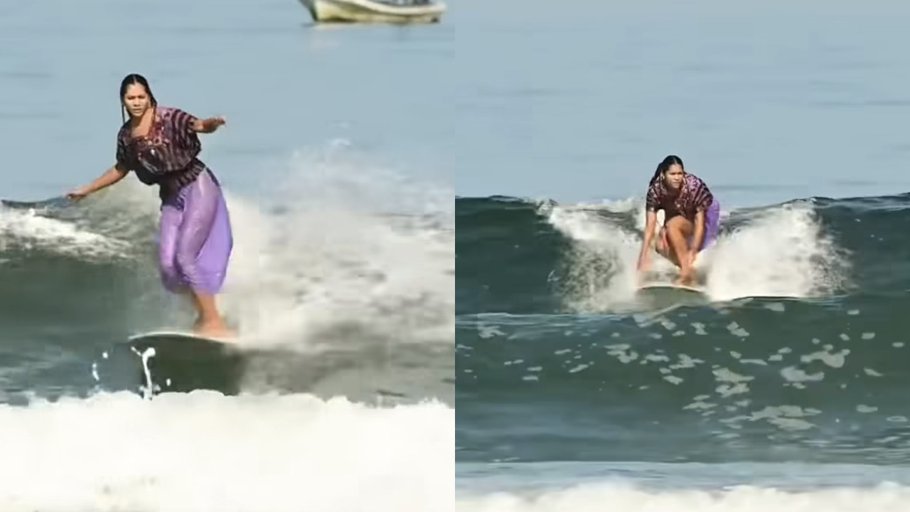 Surfista mexicana domina olas con todo y huipil